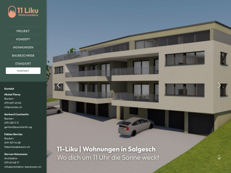 Online-Vermarktung auf den Punkt. Im Herzen des Wallis, in Salgesch, befindet sich die neu errichtete, nachhaltige Wohnresidenz «11 Liku». Hier warten grosszügig geschnittene 3.5- bis 5.5-Zimmer-Wohnungen auf ihre ersten Bewohner.