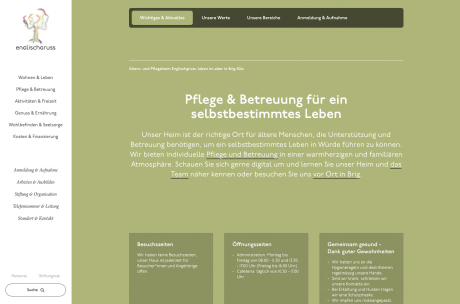 Gut organisiert - auch im Web. Seit der Eröffnung im Jahr 1992 hat das Alters- und Pflegeheim «Englischgruss» sein Angebot und die Räumlichkeiten kontinuierlich erweitert. Es bietet älteren Menschen mit Betreuungsbedarf ein gemütliches Zuhause.