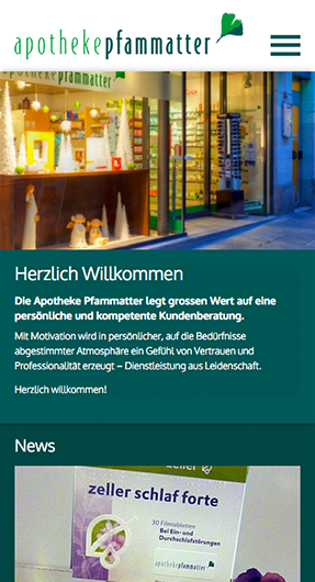Die komplette Webseite passt sich dynamisch der Fenster- bzw. Bildschirmgrösse an: Die Textgrösse wird auf das jeweilige Zielgerät optimiert, Elemente werden verschoben und auch per Touchscreen bedienbar.