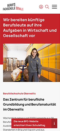 Das Zentrum für berufliche Grundbildung und Berufsmaturität im Oberwallis an 2 Standorte mit 62 Lehrberufe für 2'000 Lernende. Die Berufsfachschule Oberwallis setzt mit ihrer neuen Webseite auf eine zeitgemässe Online-Präsenz, die durch ein modernes Webdesign und eine benutzerfreundliche Struktur überzeugt.