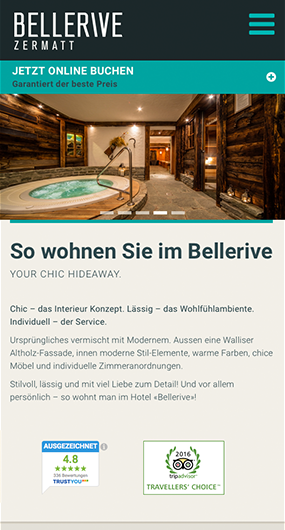 Die komplette Webseite passt sich dynamisch der Fenster- bzw. Bildschirmgrösse an: Die Textgrösse wird auf das jeweilige Zielgerät optimiert, Elemente werden verschoben und auch per Touchscreen bedienbar.