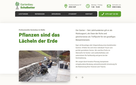 Wenn es um den Gartenbau im Wallis geht, sind Sie bei Gartenbau Schalbetter an der richtigen Adresse. Der Traum vom wunderschönen Garten erfüllt Schalbetter seit 2003 mit seinem Team im ganzen Oberwallis. Der Gedanke einer intakten Natur und die Nachhaltigkeit für die Umwelt wird bei jeder Gestaltung und dem Unterhalt eines Garten mitgetragen.