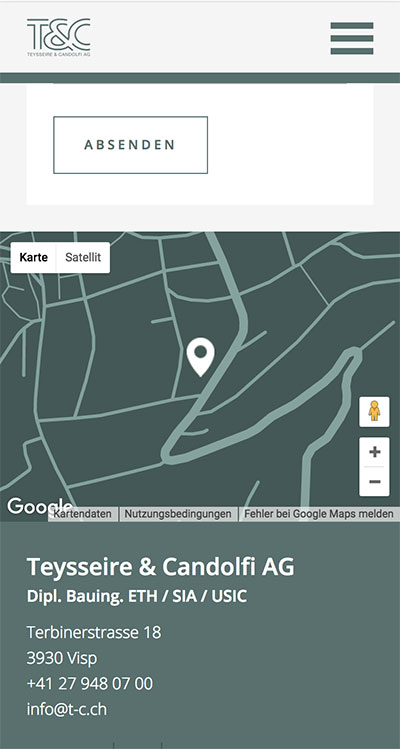 Die komplette Webseite passt sich dynamisch der Fenster- bzw. Bildschirmgrösse an: Die Textgrösse wird auf das jeweilige Zielgerät optimiert, Elemente werden verschoben und auch per Touchscreen bedienbar.