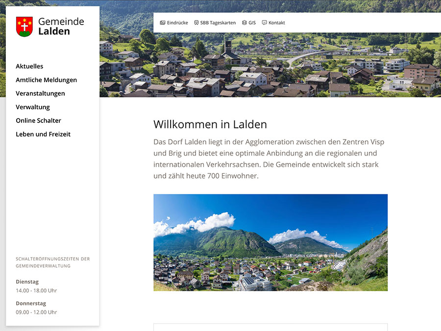 Wenn kleine Änderungen viel Wirkung zeigen. Danke des sanften Redesigns und der Umstrukturierung der Inhalte erscheint die neue Webseite von der Gemeinde Lalden in neuem Glanz