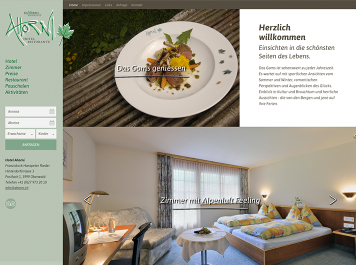 Die neue Webseite des Hotel Ahorni kommt mit einer modernen Seitennavigation, grösseren Bildern und einem einheitlichem Seitenaufbau daher.