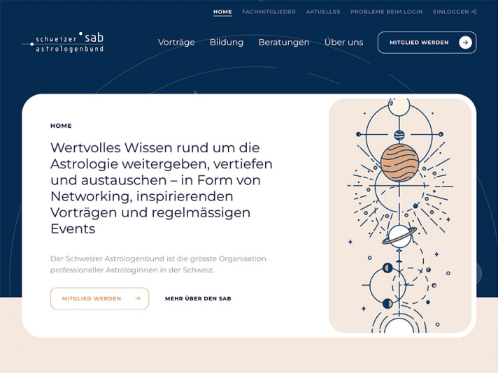 Wertvolles Wissen rund um die Astrologie weitergeben, vertiefen und austauschen. Wir durften die grösste Astrologen-Organisation der Schweiz beim Digitalisierungsprozess begleiten und betreuen.