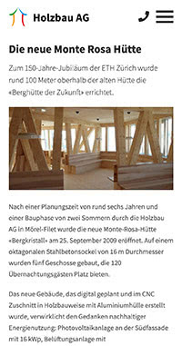 Die komplette Webseite passt sich dynamisch der Fenster- bzw. Bildschirmgrösse an: Die Textgrösse wird auf das jeweilige Zielgerät optimiert, Elemente werden verschoben und auch per Touchscreen bedienbar.