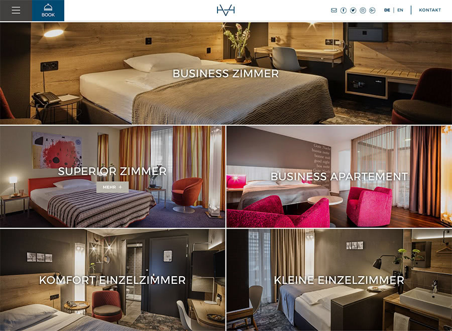 Die Buchungsmaske ist auf jeder Seite genau dort integriert wo sie erwartet wird. Das Design folgt einem Kachelprinzip und ist vollumfänglich responsive – somit steht einer Buchung von unterwegs auch nichts mehr im Weg. Mit unserem CMS findet sich der Hotelier schnell zurecht und kann Inhalte einfach anlegen und bearbeiten, ohne eine technische Oberfläche erlernen zu müssen – so macht Webseite bearbeiten Spass.