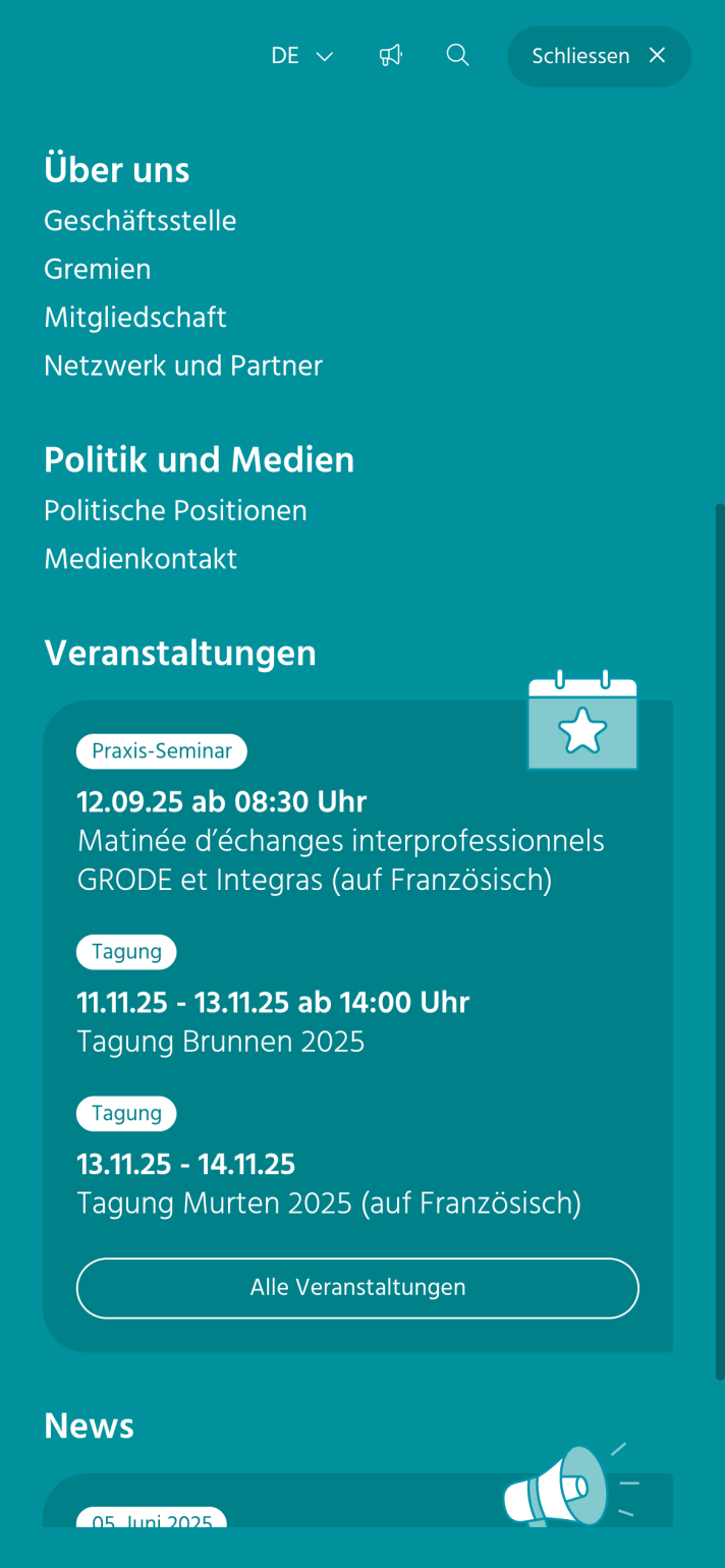 Die komplette Webseite passt sich dynamisch der Fenster- bzw. Bildschirmgrösse an: Die Textgrösse wird auf das jeweilige Zielgerät optimiert, Elemente werden verschoben und auch per Touchscreen bedienbar.