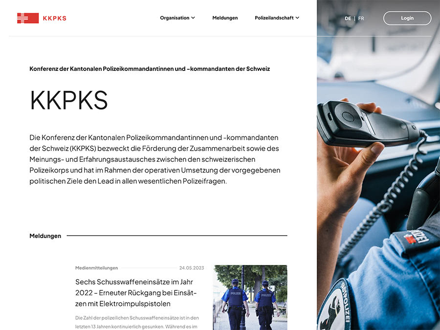Die KKPKS, gegründet 1896, ist ein Verein und besteht aus 31 Mitgliedern. Im Laufe der Jahrzehnte entwickelte sich die KKPKS zu einer wichtigen Konferenz im System der inneren Sicherheit der Schweiz. Die Website bildet hier die zentrale Plattform der Kommunikation und Sicherstellung des Informationsaustauschs. Mit dem öffentlichen Bereich sollen die Arbeiten und Leistungen der KKPKS gegen Aussen klarer und verständlicher aufgezeigt werden.