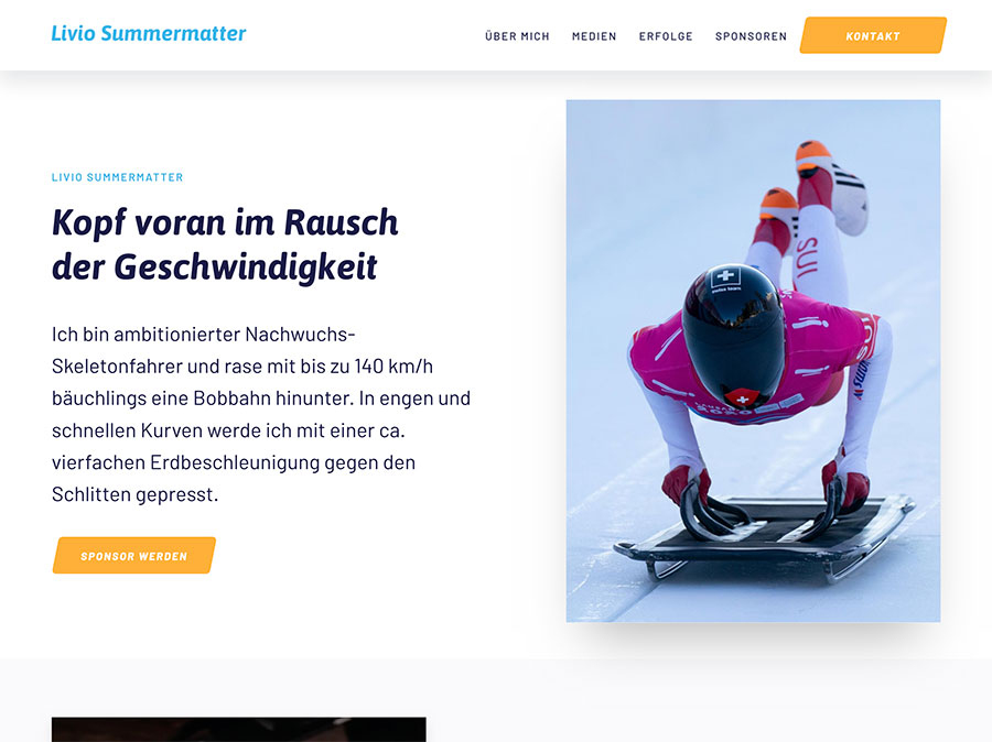 Im Rahmen eines Sponsorings haben wir für den bäuchlings rasenden Bobfahrer eine neue Website kreiert und entwickelt. Wir wünschen Livio Summermatter viel Erfolg und natürlich Hals-und-Beinbruch.