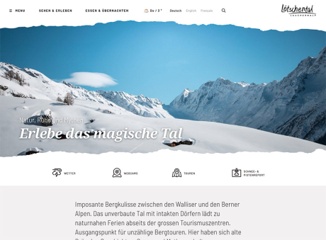 Das Lötschental – Eines der urchigsten Täler der Schweiz präsentiert sich zur Wintersaison 2018/19 mit neuem digitialen Gästeportal. Das neue ganzheitliche Design-Konzept und eine umfangreiche Umstrukturierung der Navigation hilft den Besucher schnell den gewünschten Inhalt zu finden.