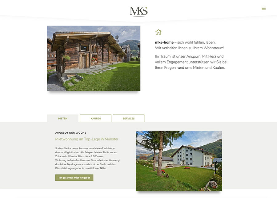 Sich wohl fühlen, leben – mks-home verhilft Ihnen zu Ihrem Wohntraum! Mit Herz und vollem Engagement unterstützt Sie MKS bei Ihren Fragen rund ums Mieten und Kaufen. Mit einer eigenen Webseite zur Präsentation aller Immobilien startet das neue Unternehmen durch.