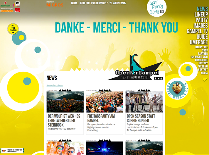 Das moderne Webdesign und der optimal strukturierte Inhalt mit den zahlreichen Bildern und Videos sorgen bereits vor dem Festival für eine tolle Atmosphäre. Ein downloadbarer Slotplan, ein informativer Guide, unterschiedliche interaktive Rubriken wie «Ich suche dich», «die Fundgrube» etc.) und vieles mehr runden den Webauftritt ab.