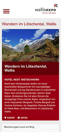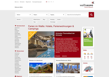 Das Portal für touristische Leistungsträger im Wallis: Dank optimaler Suchmaschinenreferenzierung erreicht wallisexpo in den relevanten Suchbegriffen Topplatzierungen auf Google oder anderen Suchmaschinen und verzeichnet so monatlich mehr als 40'000 Seitenzugriffe. Webdesign vom Wallis fürs Wallis.