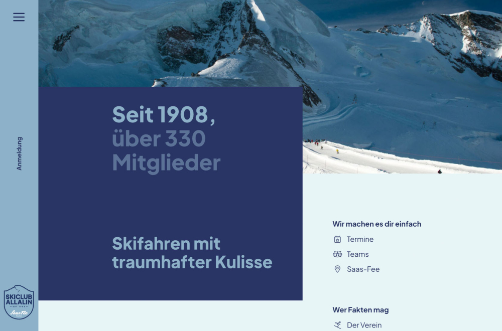 In die digitale Spur eingefügt – die neue Webseite des Skiclubs Allalin Saas-Fee. Der Skiclub Allalin Saas-Fee ist ein traditionsreicher Verein, der seit 1908 besteht und über 330 Mitglieder zählt. Mit seiner atemberaubenden Lage in Saas-Fee bietet er Wintersportliebhabern vielfältige Möglichkeiten, insbesondere im Skirennsport.