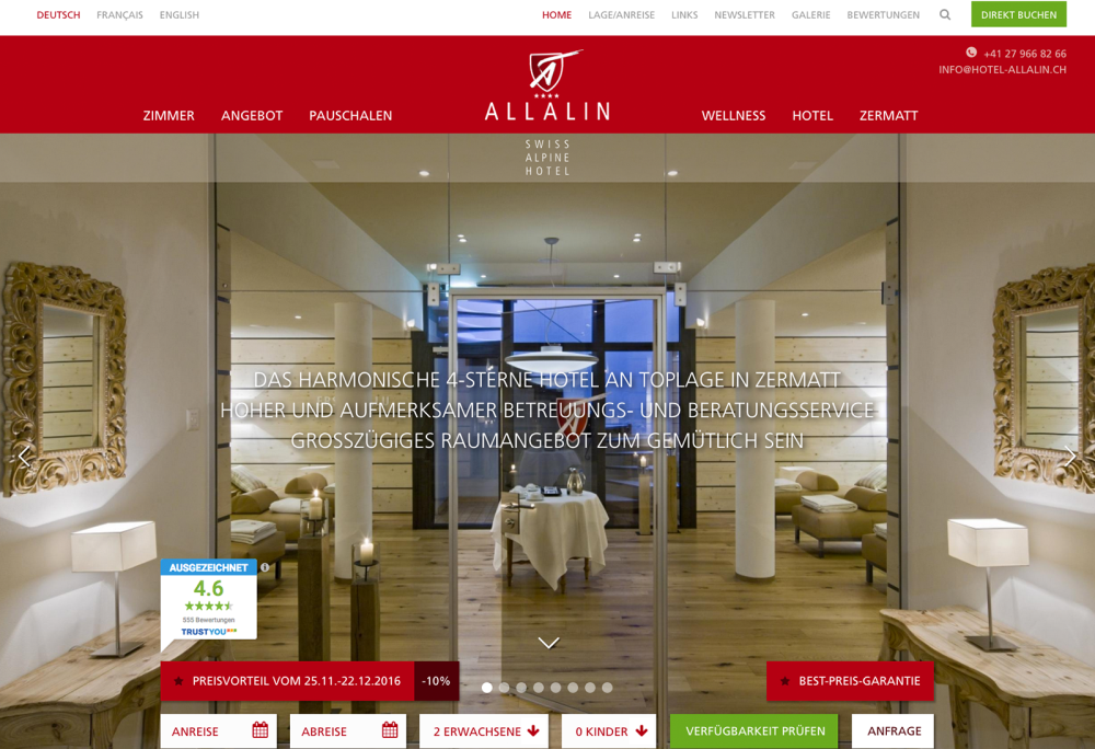 Damit die Gäste auch direkt online buchen können, wurde die Buchungsmaske des Unternehmen Reconline AG aus Zermatt integriert.