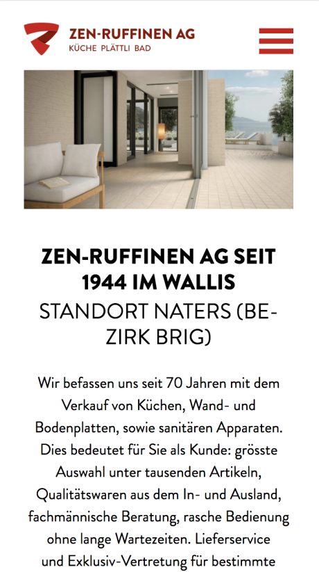 Die Zen-Ruffinen AG befasst sich seit 70 Jahren mit dem Verkauf von Küchen, Wand- und Bodenplatten, sowie sanitären Apparaten.