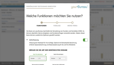 yourBureau ist eine webbasierte Schweizer Business-Lösung und bietet viele Funktionen für Ihr Unternehmen: Schreiben Sie Ihre Offerten von unterwegs, behalten Sie Ihre Aufträge stets im Überblick und nehmen Sie jederzeit Einblick...