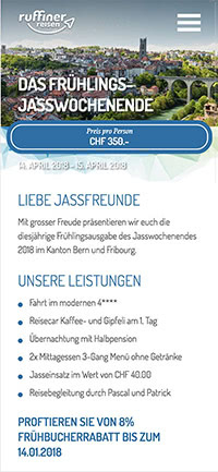 Die komplette Webseite passt sich dynamisch der Fenster- bzw. Bildschirmgrösse an: Die Textgrösse wird auf das jeweilige Zielgerät optimiert, Elemente werden verschoben und auch per Touchscreen bedienbar.