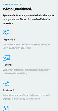 Seit über 40 Jahren veranstaltet Quadrimed jährlich einen Ärzte­kongress mit lehrreichen Workshops, Vorträgen oder Seminaren in Crans Montana. Die neue Website bietet Teilnehmern alle Informationen rund um den Ärztekongress...