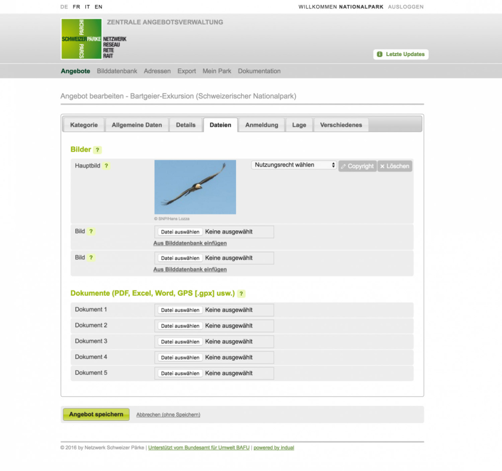 Angebots-Datenbank Schweizer Pärke
