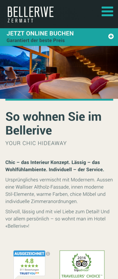 Die komplette Webseite passt sich dynamisch der Fenster- bzw. Bildschirmgrösse an: Die Textgrösse wird auf das jeweilige Zielgerät optimiert, Elemente werden verschoben und auch per Touchscreen bedienbar.