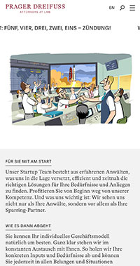 Die komplette Webseite passt sich dynamisch der Fenster- bzw. Bildschirmgrösse an: Die Textgrösse wird auf das jeweilige Zielgerät optimiert, Elemente werden verschoben und auch per Touchscreen bedienbar.