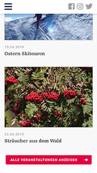 Die komplette Webseite passt sich dynamisch der Fenster- bzw. Bildschirmgrösse an: Die Textgrösse wird auf das jeweilige Zielgerät optimiert, Elemente werden verschoben und auch per Touchscreen bedienbar.